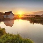 Если присмотреться, то можно заметить небольшой пруд, в котором отражаются словно в зеркале стволы деревьев и трава. А так же заметны играющие в воде солнечные блики. Необходимо обратить внимание на камень, который находится на краю пруда. Он как бы является границей между рощей и прудом. Скорее всего он лежит уже здесь очень давно, потому что зарос мхом и травой.