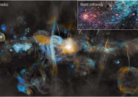 Астрономы представили потрясающее изображение центра Млечного Пути, полученное с помощью радиотелескопа MeerKAT в Южной Африке. Этот снимок, охватывающий область протяженностью 1000 световых лет, демонстрирует хаотическое сердце нашей галактики в…