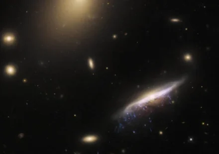 Космический телескоп Хаббла НАСА наблюдал галактику, подвергшуюся воздействию набегающего давления. Из-за явления, известного как разрыв под давлением, из галактики JW100 появляются нити, напоминающие щупальца. Эта «галактическая медуза» была запечатлена…