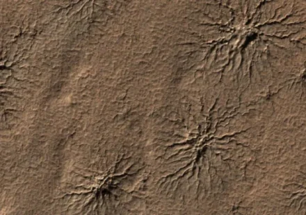 В 2003 году снимки с марсианских орбитальных аппаратов впервые показали странные паукообразные формы, разбросанные по южному полушарию Марса. Из тех снимков и данных, собранных впоследствии, видно, что каждое образование может простираться более чем на 1…
