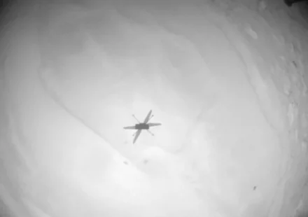 Снимок сделан вертолетом Ingenuity во время его 59-го полета в рамках миссии Sol 915.[/caption] Ingenuity, вертолет-рекордсмен, в 59-й раз совершил полет на Марсе. Во время этого вертикального полета он впервые поднялся на высоту 20 м над поверхностью…