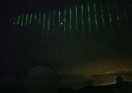 Покадровое изображение мигающих зеленых лазерных импульсов в ночном небе.[/caption] Камера, установленная на самой высокой вершине Гавайских островов, недавно запечатлела серию линий, мелькающих вверх и вниз по ночному небу региона. В чем причина этого…
