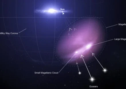 Исследователи использовали спектроскопические наблюдения ультрафиолетового света квазаров для обнаружения и картирования Магеллановой Короны — диффузного ореола горячего, сверхзаряженного газа, окружающего Малое и Большое Магеллановы облака.…