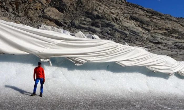 За последние десять лет стремительно возросло число мер, принимаемых для сохранения горных ледников. В швейцарских Альпах все больше зимних спортивных курортов используют светоотражающие покрытия для замедления таяния льда. Эти геотекстильные покрытия размещаются на небольших участках поверхности ледника в теплое время года. Таким образом, они позволяют максимально сохранить ландшафт, который так важен для горнолыжных склонов, как и для многих других туристических зон.