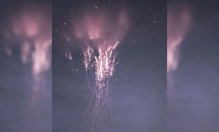 Эти светящиеся явления возникают в верхних слоях атмосферы Земли, как правило, над сильными грозовыми разрядами. Они являются следствием мощных молний, генерирующих электрические разряды в верхних слоях атмосферы.