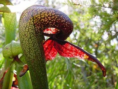 Дарлингтония — редкое хищное растение, произрастает в холодных водах болот Орегона и северной части Калифорнии. Это поистине дьявольское растение: оно не только заманивает насекомых в свой кувшин благодаря сладкому аромату, но имеет в нем многочисленные ложные «выходы», из-за чего его обреченные жертвы совершают неудачные попытки выбраться на свободу.
