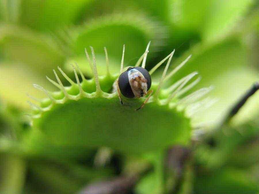 Интересно! Венерина мухоловка, чтобы сократить ложные захлопывания из-за падающих листьев и кусочков мусора, выработало уникальный механизм срабатывания ловушки: она захлопывается лишь при касании двух различных внутренних волосков в течение 20 секунд.