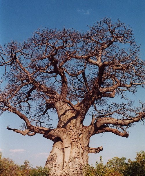 Баобаб известен своими большими размерами, необычным внешним видом и встречается во многих регионах саванны. У дерева есть чрезвычайно толстый ствол с гладкой, серой корой. Баобаб может жить в течение двух тысяч лет.