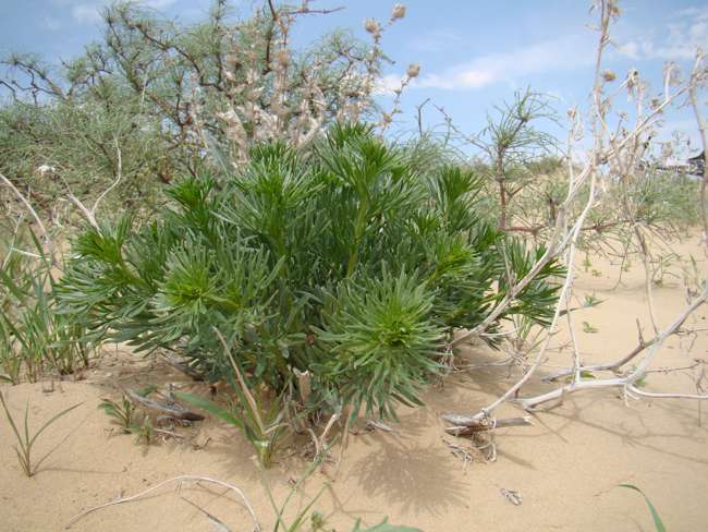 Саксаул (Haloxylon) — кустарниковое или древесное растение с влагопоглощающими игольчатыми листьями и длинными, глубокими корнями, процветающее в пустыне. Растет медленно и производит чрезвычайно твердую и стойкую древесину. Если растение становится слишком сухим, оно сбрасывает свои листья. К сожалению, эта древесина систематически разграбляется для приготовления шашлыка, и если государство не вмешивается, саксаул скоро будет найден только в заповедниках.