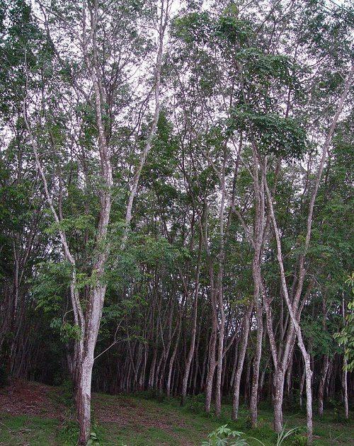 Это дерево может вырастать до 40 м в высоту. Гевея бразильская характеризуется молочно-белым соком, который обычно называется натуральным каучуком, и из него производят резину. Дерево используется для получения каучука в возрасте шести лет.
