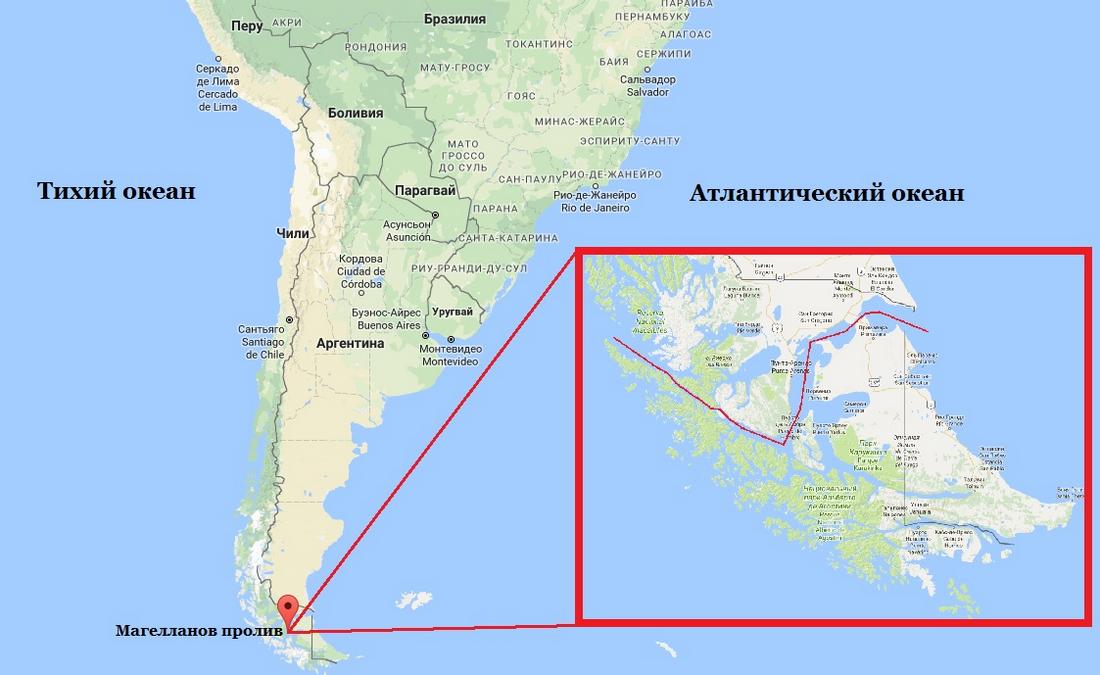 Где расположен Магелланов пролив на карте мира?