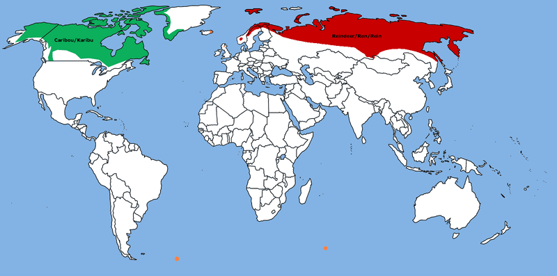 Северный олень обитает в циркумполярных регионах Северной Европы, Сибири и Северной Америки. Места обитания северного оленя включают природные зоны тундры, тайги, а также горы. Олени впервые были одомашнены тысячи лет назад в Северной Европе и Азии, а затем в Северной Америке.