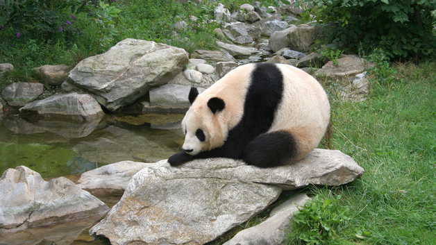 Взрослая особь большой панды может весить до 160 кг. Как и у большинства животных, самцы панды превосходят по массе самок. Самки большой панды редко достигают веса больше 100 кг. Имея высоту в холке от 60 до 90 см, панды примерно равны по размерам с американским черным медведем. Они поддерживают свою массу, непрерывно питаясь до 12 часов за раз, потребляя более 10 кг бамбука в день. В действительности, до 99 процентов рациона большой панды включает бамбук. Панды иногда питаются другими травами и грызунами. В редких случаях они могут охотится на оленей кабарги.