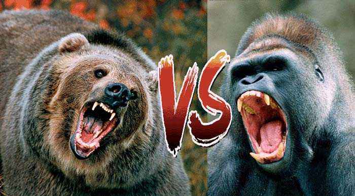 Кто победит: битва гориллы против бурого медведя?