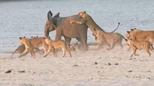 Как известно, львы нападают на слонов, только если нет другой добычи. Больные или молодые слоны являются самой легкой добычей, но даже больное животное способно дать серьезный отпор прайду львов, если того потребует ситуация.