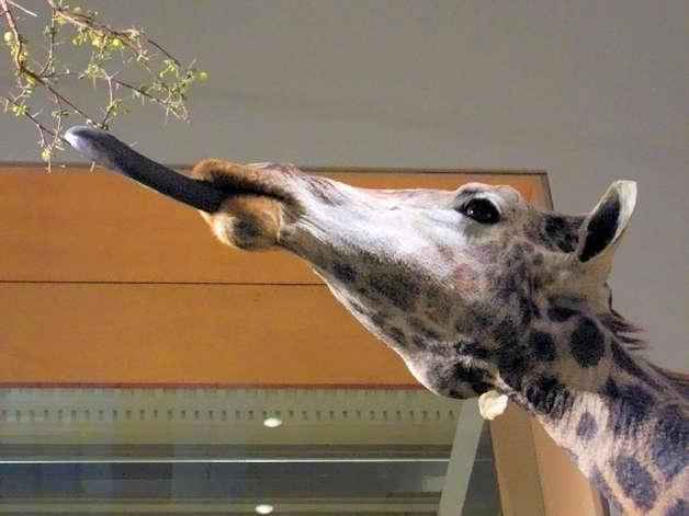 На самом деле, жирафы имеют темные языки, которые иногда называют синими или черными. Журнал Smithsonian Magazine отмечает, что некоторые ученые считают, что темная окраска защищает язык жирафа от солнечных ожогов. Обожженный язык стал бы большей неприятностью для жирафа, чем для многих других животных, потому что он и так постоянно подвергаются воздействию. Жирафы используют свои языки, чтобы питаться листвой деревьев. Они обертывают его вокруг растительности, а затем втягивают пищу себе в рот. Цепкие очень длинные языки позволяют жирафам достичь самых верхушек деревьев саванны. Длина языка в 45 см не является чем-то необычным для жирафов, особенно если брать во внимание их большой рост, который может достигать рекордных среди всех наземных животных 6 метров.