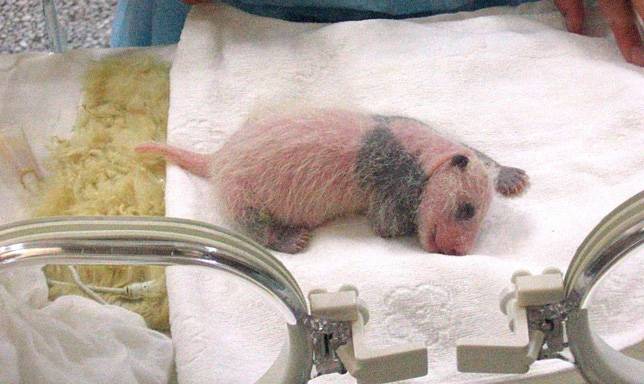 Эти милые медведи могут иметь слово «большой» в своем имени, но единственно правильное слово, которым можно описать новорожденную панду является миниатюрный. Всемирный фонд дикой природы отмечает, что размер детеныша большой панды составляет примерно 1/900 размера матери. Размер не единственное различие между матерью и малышом. Большая панда является наиболее узнаваемым видом медведей в мире благодаря черно-белой шубке. В течение первой недели жизни, детеныш панды розовый. Затем, черные пятна начинают появляться на коже вокруг глаз, ушей, плеч и ног.