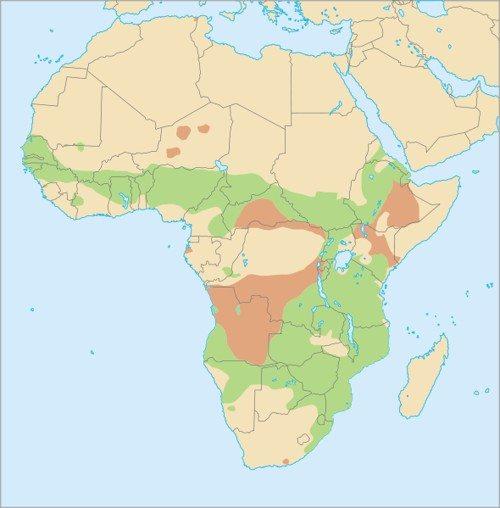Распределение бородавочника ограничено из-за вмешательства человека. Бородавочники нуждаются в прохладных уголках, чтобы справиться с высокими температурами днем, и укрытиях, чтобы согреться во время ночного холода.
