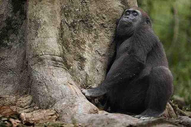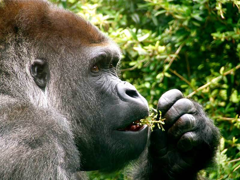 Гориллы живут в группах с численностью от 5 до 10 или более особей, однако они остаются вместе независимо от наличия фруктов. Когда фруктовые плоды трудно найти, они прибегают к поеданию листьев и побегов. Поскольку гориллы остаются вместе, самец способен монополизировать самок в своей группе. Этот факт связан с большим половым диморфизмом у горилл, чем шимпанзе. Как у шимпанзе, так и у горилл, группы включают по крайней мере одного доминирующего самца, при этом самки покидают группу в зрелом возрасте.