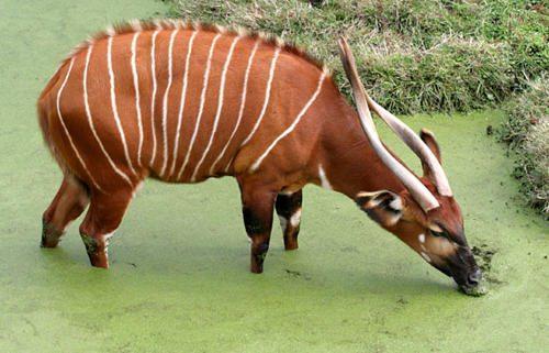 Бонго — это крупные и тяжелые лесные антилопы. У них темно-рыжая или каштановая шерсть с 10-15 вертикальными белыми полосами, которые спускаются по бокам. Самки, как правило, ярче самцов. Оба пола имеют рога в форме спирали. Большие уши, как полагают, обостряют слух, а отличительный окрас помогает животным идентифицировать друг друга в темной лесной среде обитания. Они не имеют никаких специальных желез секреции, поэтому меньше других антилоп полагаются на запах, чтобы найти друг друга.