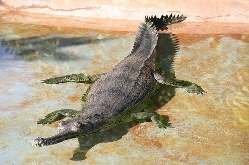 Гангский гавиал (Gavialis gangeticus), является родным видом крокодилов для Индийского субконтинента. Это чрезвычайно опасный вид, и в дикой природе осталось только около 200 выживших особей. Это пресмыкающееся считается одной из самых длинных рептилий и может достигать 5,5 метров. Рыба выступает главным продуктом питания гангского гавиала, а 110 острых зубов, длинная тонкая морда хорошо приспособлены для ее вылова и потребления.