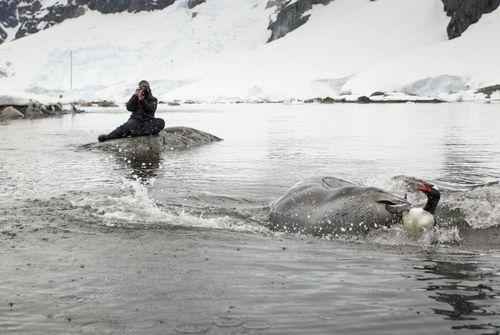 Однако не все встречи с людьми являются угрожающими. Когда фотограф National Geographic Пол Никлен нырнул в антарктические воды, чтобы наблюдать за поведением животных, самка, которую он сфотографировал, притащила ему раненых и мертвых пингвинов. Неизвестно, пыталось ли это животное накормить фотографа, научить его охотиться, или имело другие мотивы.
