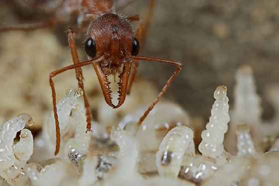 Сообщество муравьев построено на специальных «общественных» природных инстинктах. Функционирование такого сообщества основано на кастовом и физиологическом разделении функций между ее членами. В сообществе муравьев-бульдогов выделяют касты самок, самцов и рабочих. Особи, относящиеся к разным кастам, отличаются друг от друга размерами. Как и других общественных насекомых, рабочие этого вида – бесплодные самки. В каждой колонии есть матка. Ее функция – давать новое потомство. Рабочие муравьи не только строят ячейки, в которые откладываются яйца, но также ухаживает за личинками и добывает пищу.