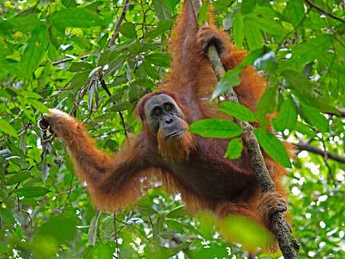 Орангутаны широко известны благодаря своему красно-коричневому меху. Они по праву считаются самыми крупными древесными млекопитающими, проводящими большую часть своей жизни на деревьях. Орангутаны обладают длинными и сильными руками, с помощью которых с легкостью проходят сквозь заросли деревьев. Ноги этих животных выступают всего лишь помощниками рукам, поскольку являются относительно короткими и слабыми. Длина тела составляет 1,25-1,5 метра, вес самки составляет 30-50 килограммов, а самца – 50-90 килограммов.