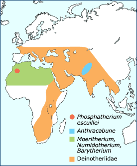 Другие предки хоботных включают нумидотерий (Numidotherium), баритерий (Barytherium) и динотерий (Deinotherium). Останки этих ранних хоботных были обнаружены в северной Африке вдоль южного побережья океана Тетис, существовавшего в мезозойской эре. Numidotherium вырастал около 1,5 метров в высоту и имел хобот длиной, как у тапира. Многие остатки этого раннего хоботного были получены из средних эоценовых отложений в Алжире.