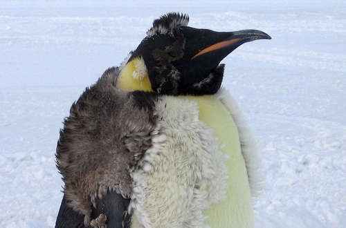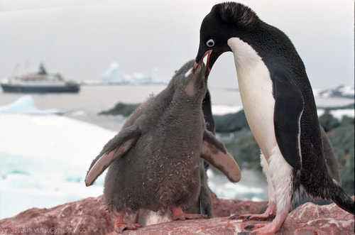 Оба родителя-пингвина заботятся и кормят своих птенцов. Большинство видов производят два яйца за раз, но императорские пингвины (Aptenodytes forsteri) — самый крупный из всех пингвинов, взращивают только одного птица за сезон размножения. Самец императорского пингвина берет на себя единственную ответственность за сохранение яйца, удерживая его между ног и под складками жира, а самка отправляется к морю за едой.