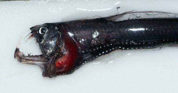 Черный идиакант представляет собой вид биолюминесцентных рыб, обитающих в глубоких водах океанов. Самки этого вида имеют острые, клыки и зубы, а также свисающий с подбородка длинный усик, который содержит фотофоры, производящие свет и выступающие в качестве приманки, привлекающей добычу. Взрослая самка идиаканта может достигать длины около 60 см и имеет сходство с угрями. Самцы этого вида менее пугающие, чем самки. Они намного меньше, без зубов и усов.