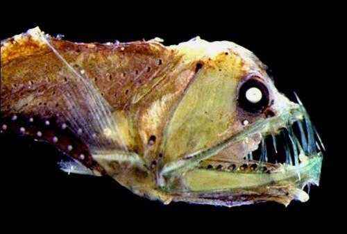 Длиннорогий саблезуб — страшная глубоководная рыба с большой головой, острыми клыками и выступающими гребнями. Ее нижние клыки такие длинные, что рыба не может полностью закрыть свой рот. Экстремальные условия жизни на большой глубине усложняют для этого вида поиск пищи. Взрослые саблезубы — агрессивные охотники, которые, как правило, всасывают добычу в рот, а затем проглатывают ее целиком.