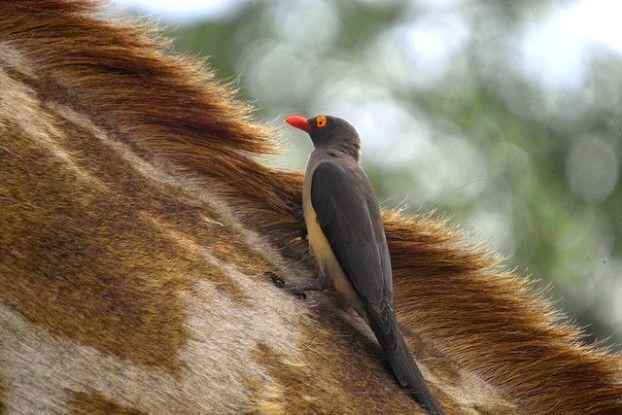 Между жирафами и буйволовыми скворцами существуют взаимовыгодные отношения. Они предусматривают очищение спины и шеи жирафа птицами от клещей. При этом скворцы получают пищу, а жирафы избавляются от проблемных паразитов.