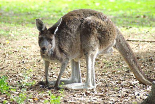 Самый большой представитель семейства кенгуровые может достигать массы около 90 кг и длины тела 1,3 метра. У них короткая шерсть, которая изменяется от оранжево-коричневого до серого или темно-коричневого цвета. Половой диморфизм выражен, самцы больше, чем самки. Будучи сумчатыми, самки имеют сумку на брюшной полости, в которой они носят своих детенышей. Наиболее отличительной чертой кенгуру является их вертикальное положение тела, благодаря двум непропорционально большими задним конечностям, маленьким передним конечностями и большому толстому хвосту. Кенгуру может жить от 6 до 27 лет. Удивительно, но большую часть своей жизни, эти сумчатые проводят в сухих засушливых районах, однако также являются хорошими пловцами. Кенгуру живут и перемещаются в небольших социальных группах.