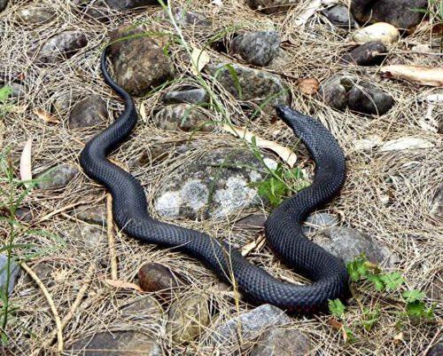 Чёрная змея — ядовитая змея среднего размера из восточной части Австралии, однако ее яд не представляет угрозы жизни человека. Она получила свое название за черный окрас верхней части тела. По бокам окрас ярко красный или малиновый, а нижняя часть тела заметно светлее. Общая длина тела составляет 1,5-2 м. Чёрная змея предпочитает ночной образ жизни. Ее рацион состоит из лягушек, ящериц, змей, насекомых и других беспозвоночных.