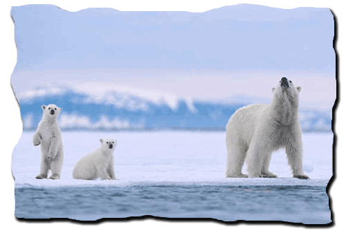 Белый или полярный медведь — один из крупнейших наземных млекопитающих. Самцы весят 370-700 кг, высота в холке от 240 до 300 см. Самки меньше, чем самцы, со средним весом 160-320 кг. Кажется, что белые медведи, имеют белую шерсть; однако их волоски прозрачные, а кожа черная. Шерсть и кожа приспособлены для поглощения солнечного света и сохранения высокой температуры тела. Как и у многих других животных Арктики и тундры, у белых медведей короткие уши, что сводит к минимуму потери тепла.