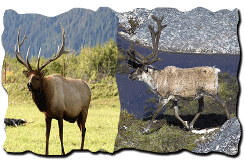 Лось и северный олень — представители семейства оленевых (Cervidae). Самцы лося имеют характерные разветвленные рога, а у северных оленей рога встречаются у обоих полов. Оба вида широко распространены в различных климатических зонах, в том числе и в тундре. Они питаются растительностью (кора, листья, трава, почки, побеги, мох, грибы).