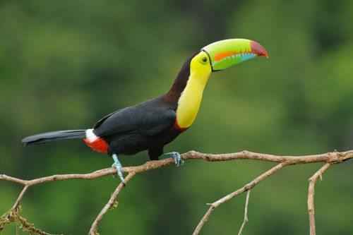 Радужный тукан (Ramphastos sulfatus) распространен в тропических лесах Латинской Америки. В этой среде он оседает в отверстиях деревьев, часто с другими туканами. Переполненные места для ночевок вынуждают туканов засовывать свои клювы и хвосты под свои тела, чтобы сэкономить место.