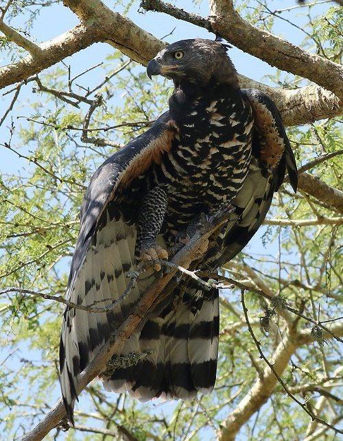 Венценосный орёл (Stephanoaetus coronatus) — это массивная и жестокая хищная хищница, распространенная в верхнем ярусе тропических лесов. Орёл в первую очередь питается млекопитающими, включая мелких копытных, маленьких приматов, птиц и ящериц. Это один из самых крупных орлов в Африке, но теперь он классифицируется как вид близкий к уязвимому положению, согласно МСОП, из-за крупномасштабного разрушения среды обитания.